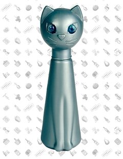 Talquera antigua industra argentina de plástico en forma de gato.